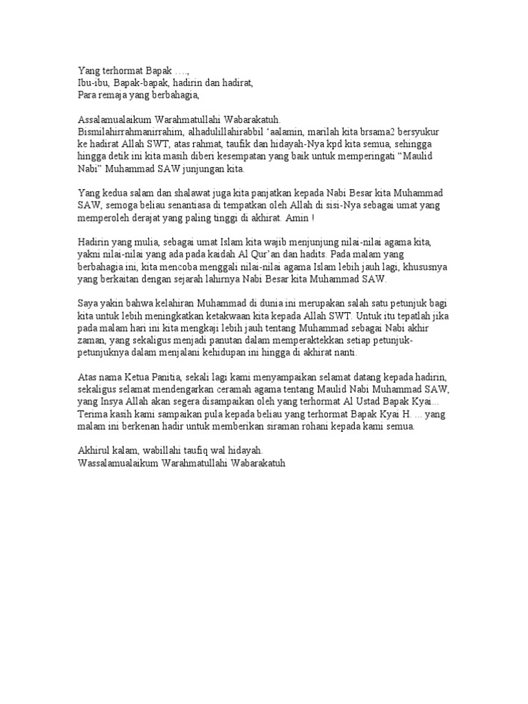 Contoh Pidato Panitia Peringatan Maulid Nabi Muhammad Saw