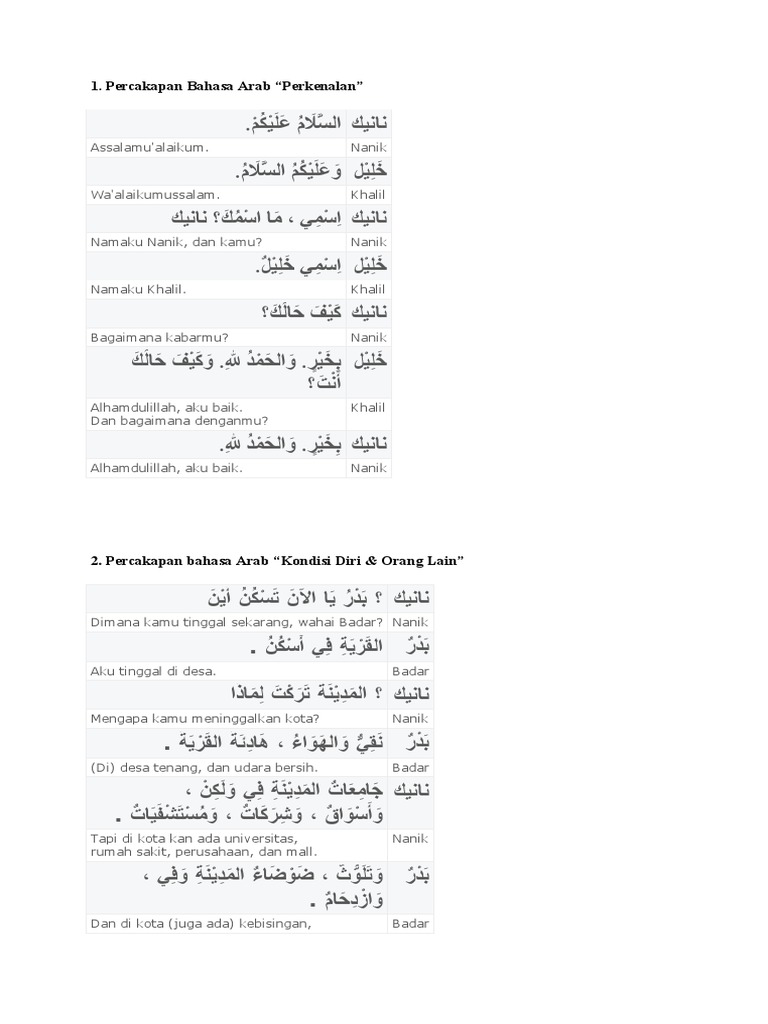 Tolong Buatkan Kan Percakapan Bahasa Arab Please Brainly Co Id