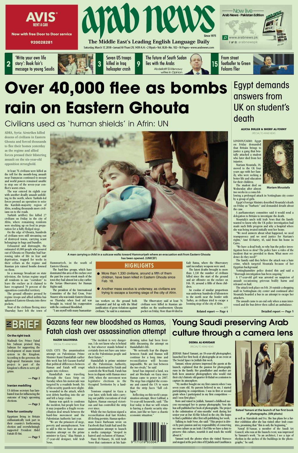Arab News Paper Yesterday