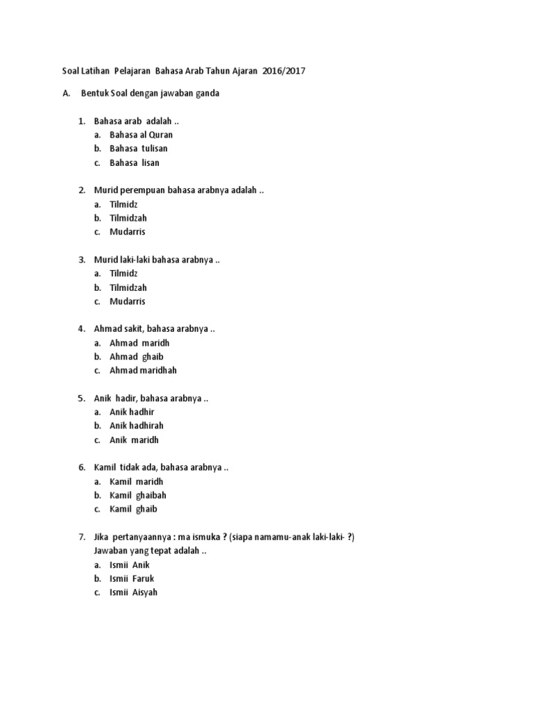 Latihan Bahasa Arab Untuk Ujicoba Hari Senin 28112016 Docx