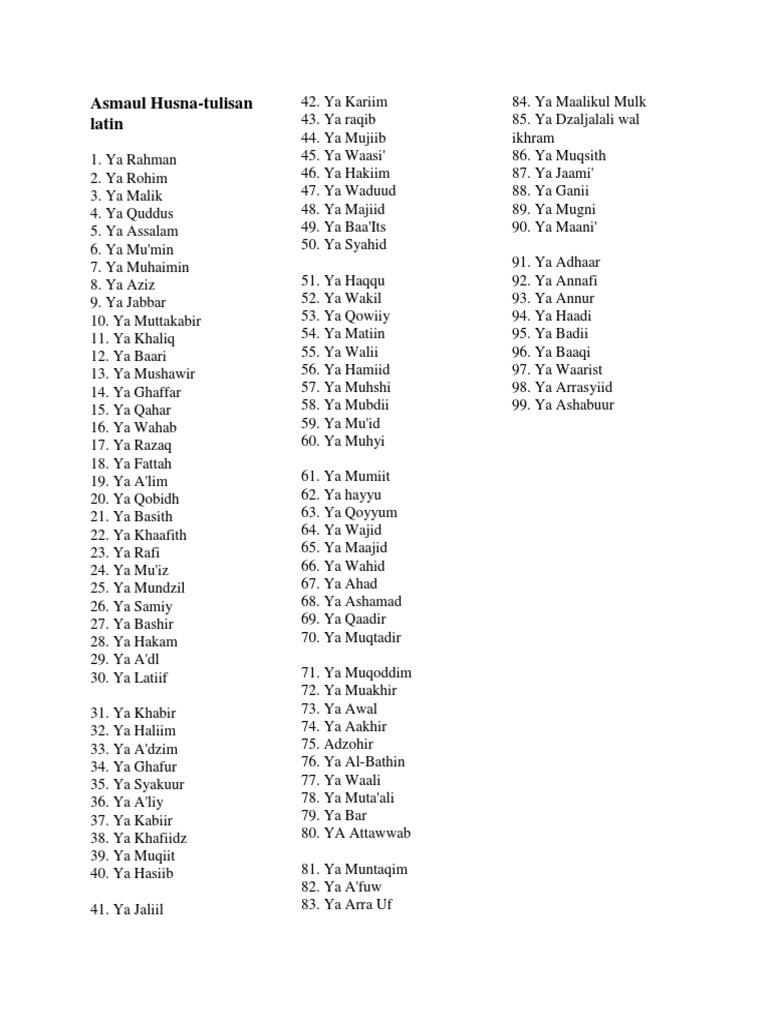 Asmaul Husna Tulisan Latin