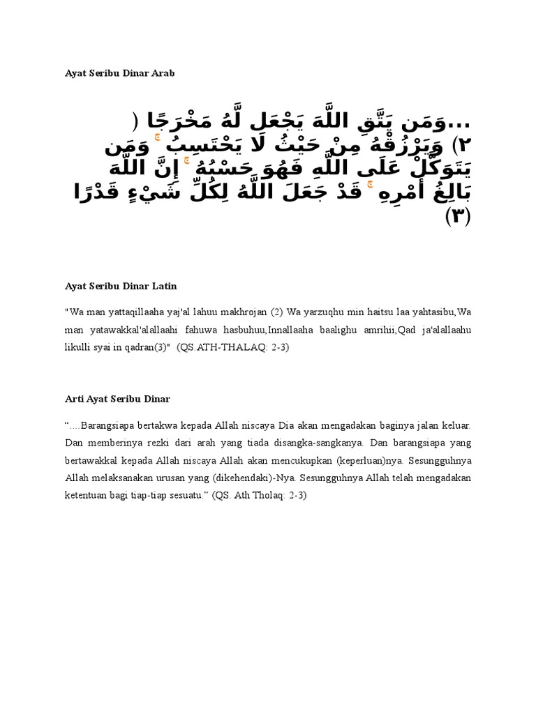 Bacaan Ayat Seribu Dinar Latin Arab Dan Artinya Docx