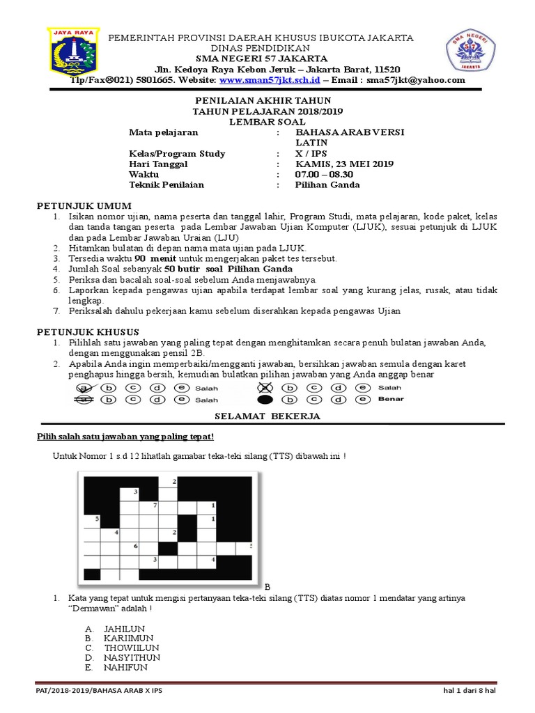 Soal Pat B Arab Latin