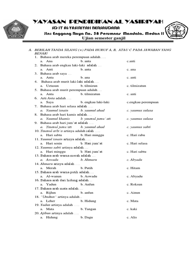 Bahasa Arab Kelas 1