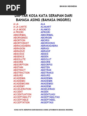 1000 Contoh Kata Serapan Dari Bahasa Asing Inggris Arab