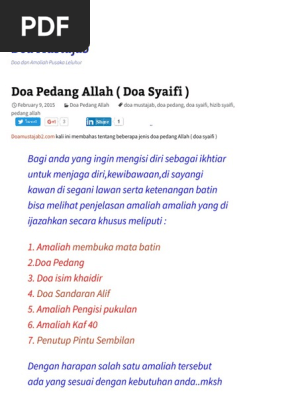 Doa Pedang Allah Doa Syaifi Dengan Ijazah Khusus Doa Mustajab