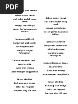 Lirik Lagu Saben Malem Jum At Ahli Kubur Tilik Ng Omah Youtube