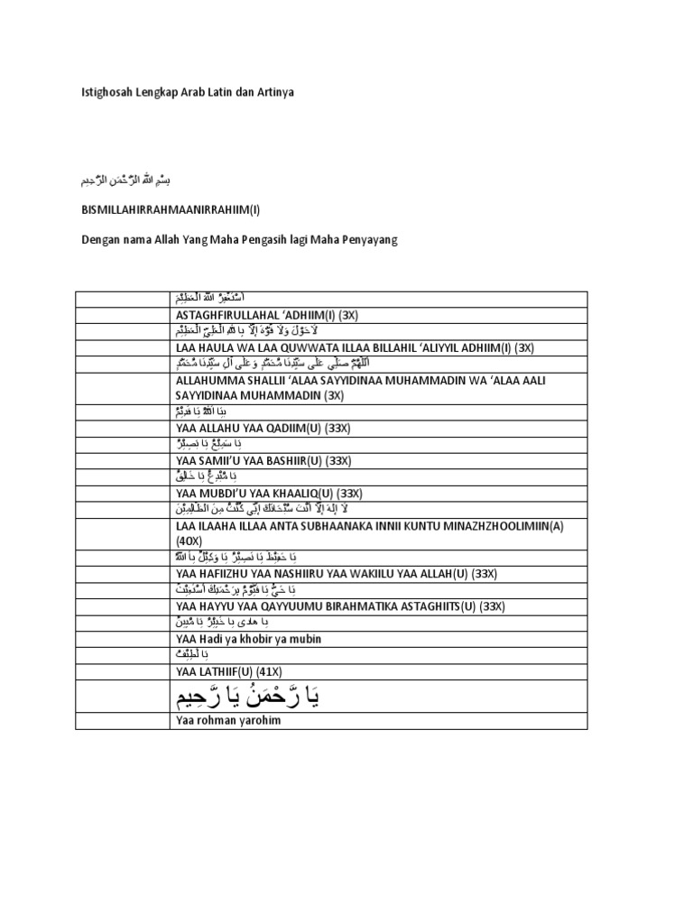 Istighosah Lengkap Arab Latin Dan Artinya Docx