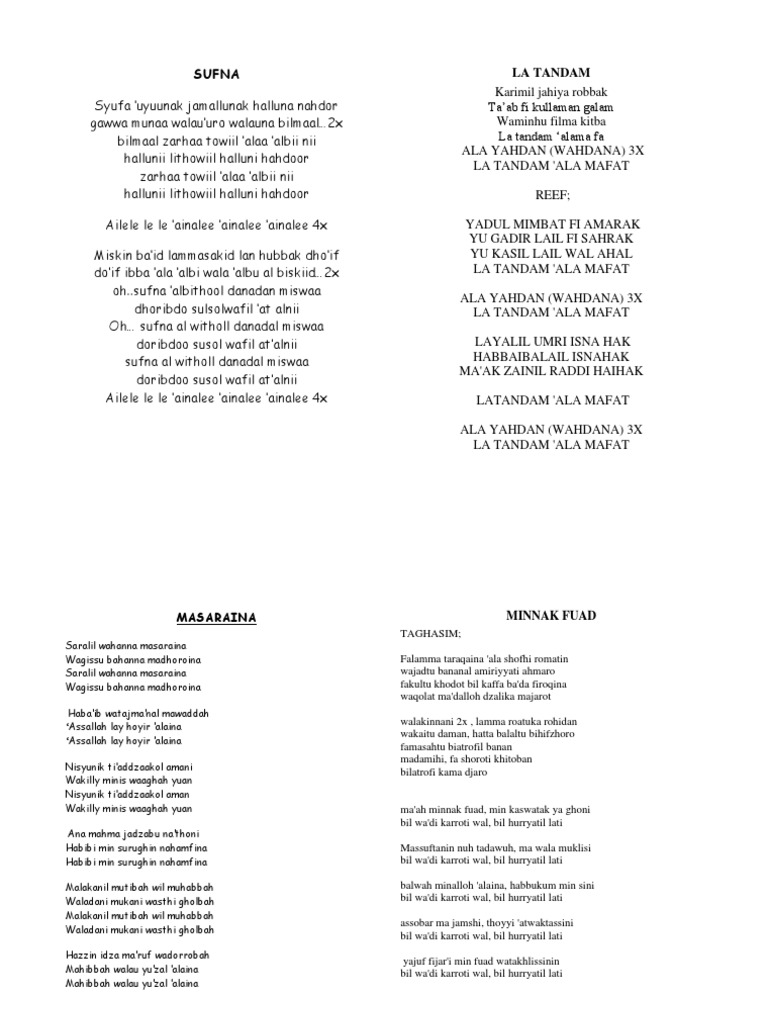 Doc Lirik Lagu Lagu Gambus Abub Shidiq Academia Edu