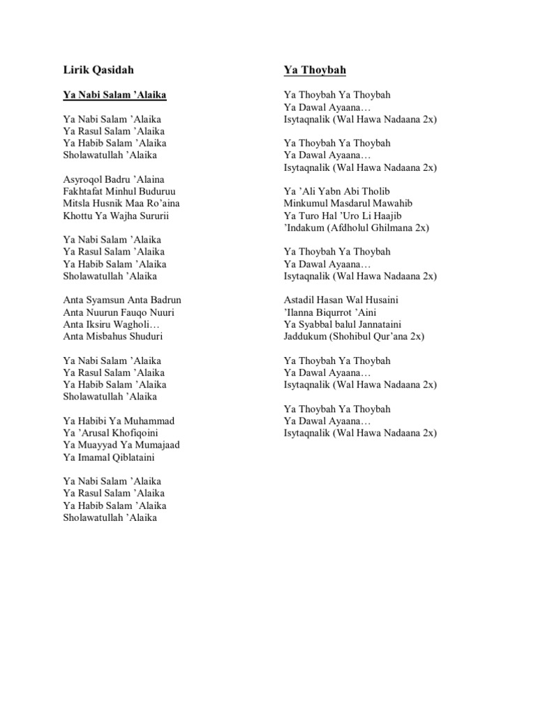 Lirik Lagu Ya Nabi Salam Alaika Terbaru 2020 Youtube