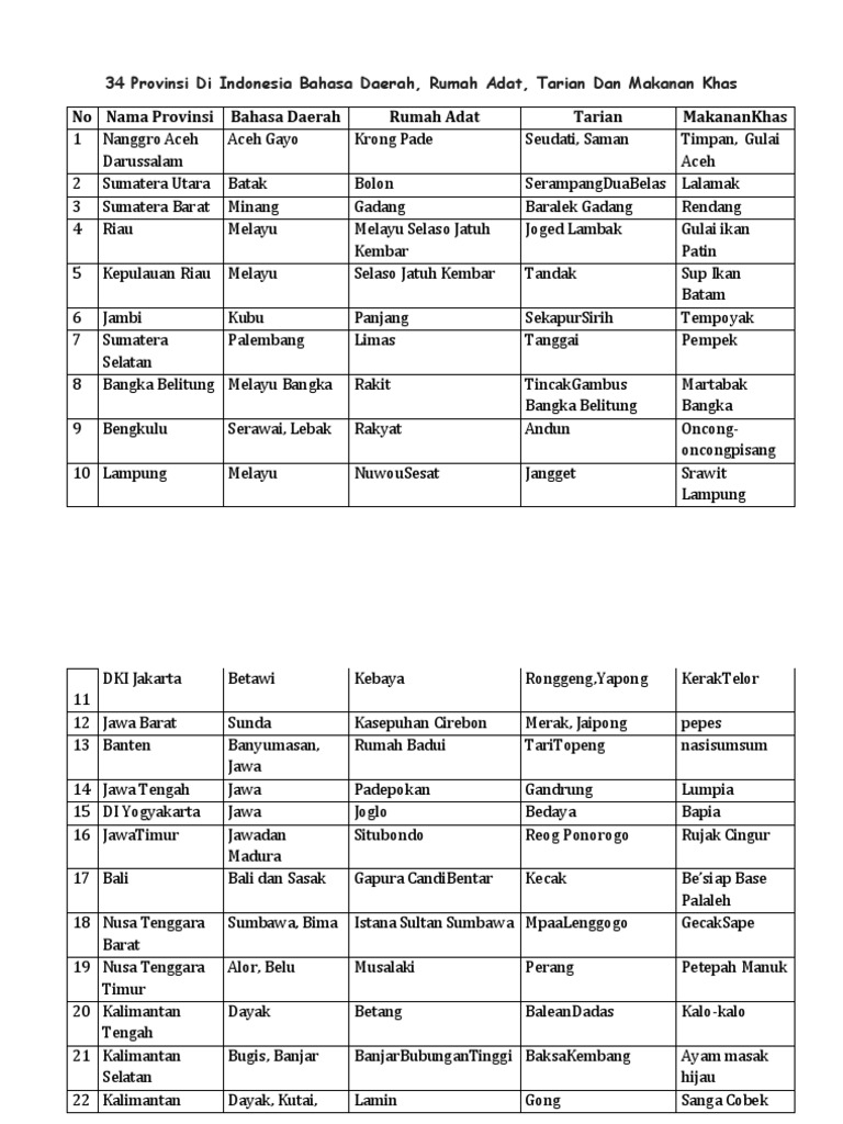 34 Provinsi Di Indonesia Bahasa Daerah Rumah Adat Tarian Dan