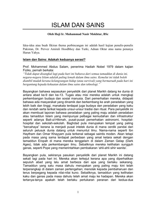 Nota Tam Aa 209 Islam Dan Sains