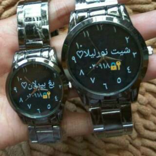 Jam Tangan Couple Arab Custom Pakai Nama Pasangan Keren Murah Stainless Hitam Tulisan Arab Arabic Shopee Indonesia