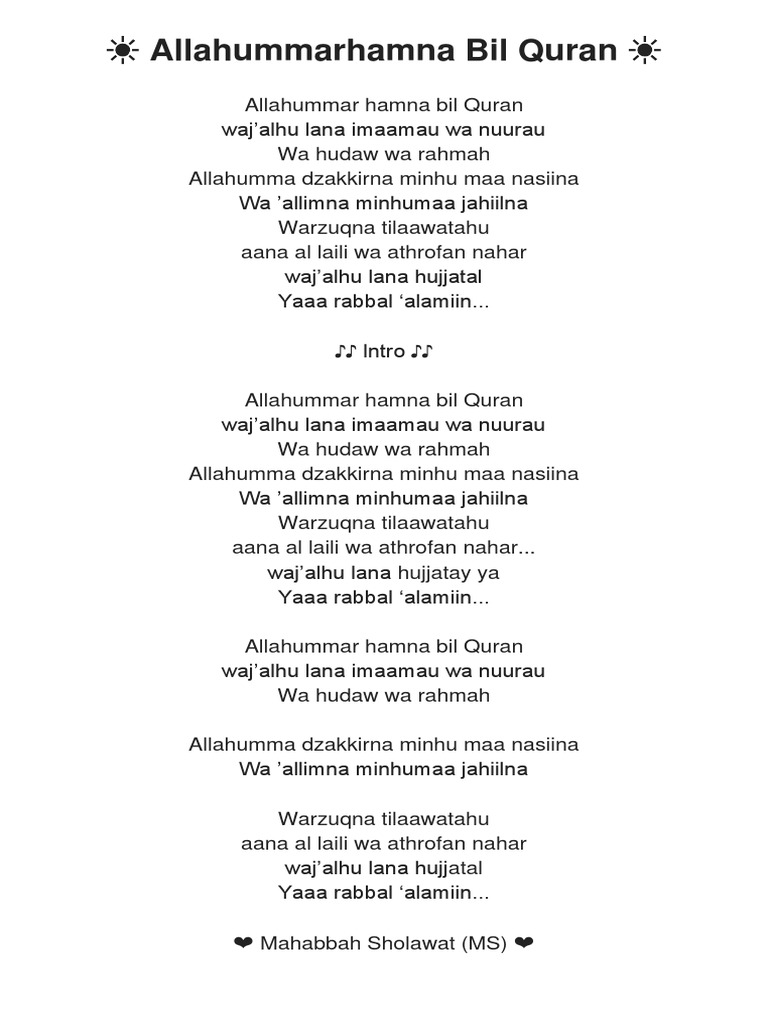 Allahummarhamna Bil Quran Lirik Arab Latin Arti Dan Video Cover