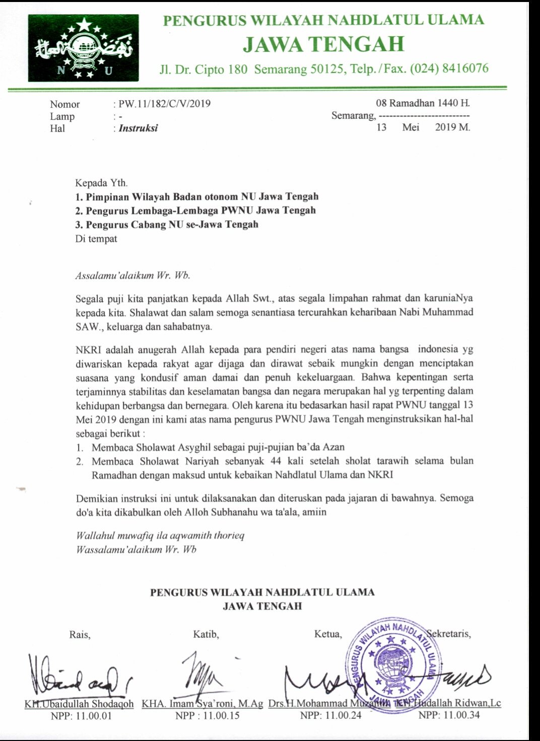 Instruksi Penyelenggaraan Harlah Nu Mcnu Madura Cinta