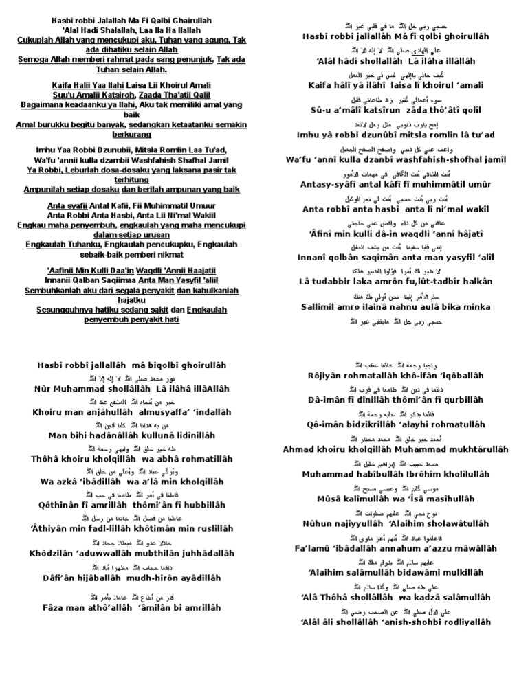 Lirik Dzikir Hasbi Robbi Jallallah Lengkap Arab Teks Latin Dan