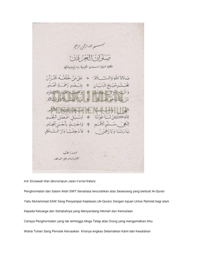 Teks Lirik Sholatullahi Wassalam Shalawat Qur Aniyah Arab Dan