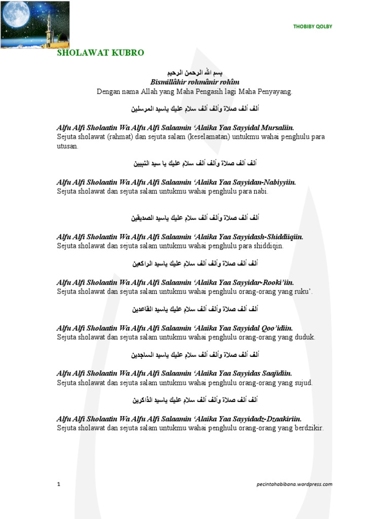 Sholawat Kubro Arab Latin Dan Terjemahnya Pdf Apps On Google Play