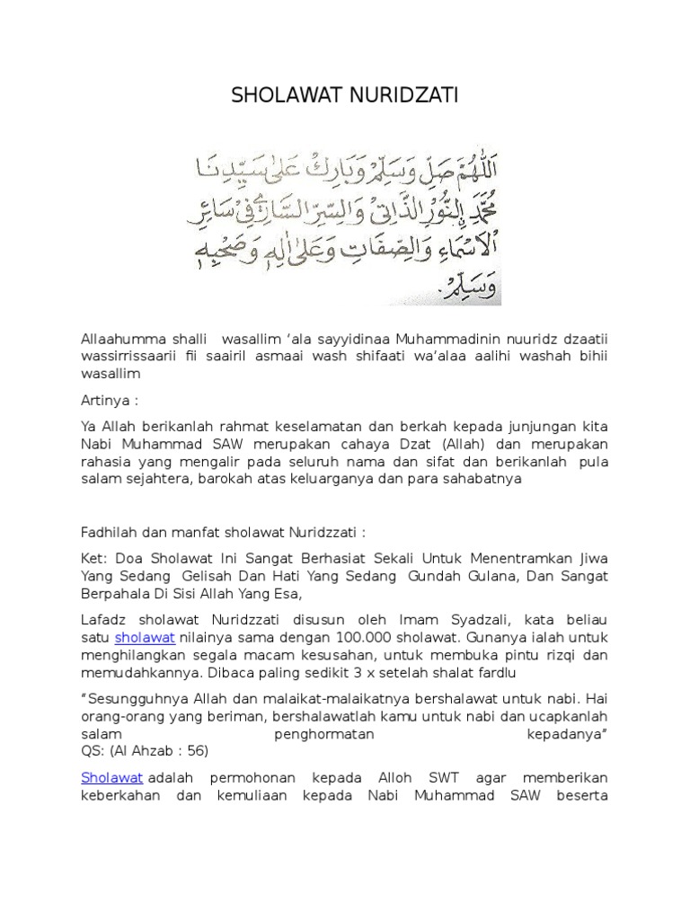 Sholawat Nuridzati Dan Keutamaannya Lengkap Teks Arab Latin Dan Arti