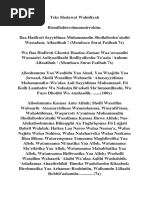 Teks Muqoddimah Sholawat Wahidiyah Pdf Document