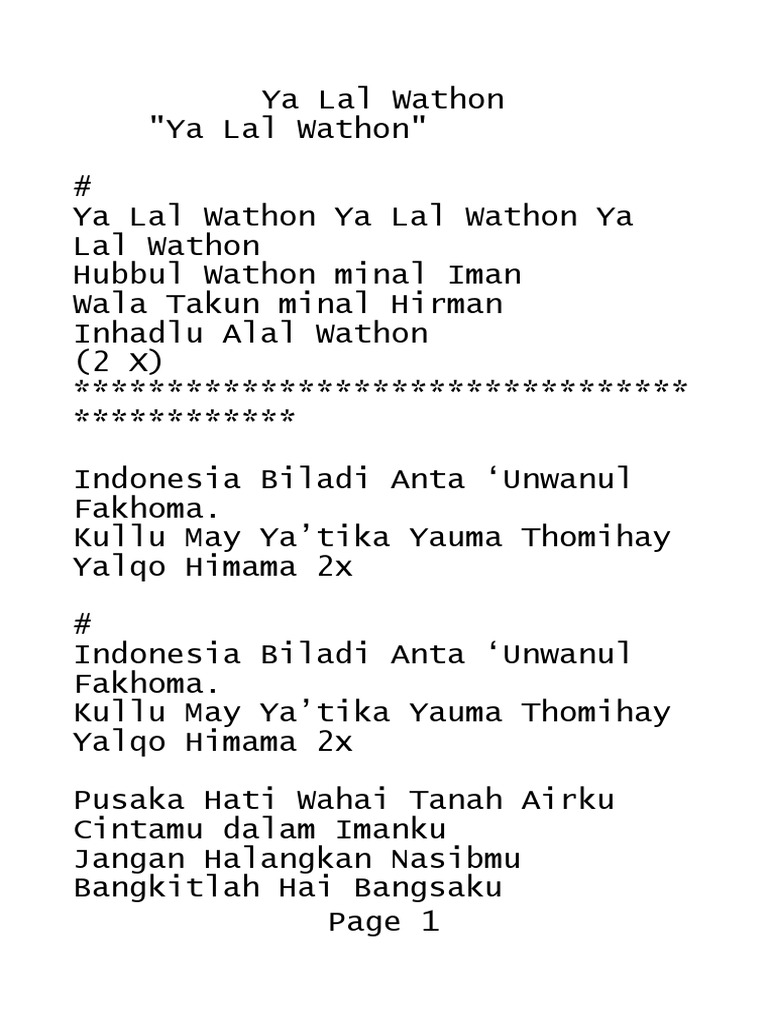 Lirik Teks Sholawat Ya Lal Wathon Docx