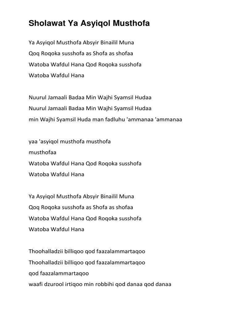 Doc Lirik Dan Arti Sholawat Ya Asyiqol Musthofa Docx Rizal Aditiyo Supendi Academia Edu